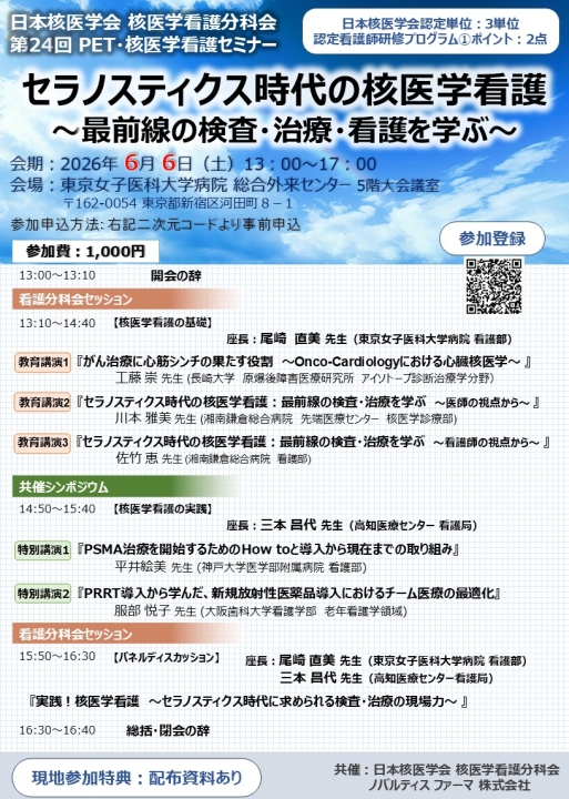 受講された方は「日本核医学会核医学診療看護師ポイント3単位」が取得できます。